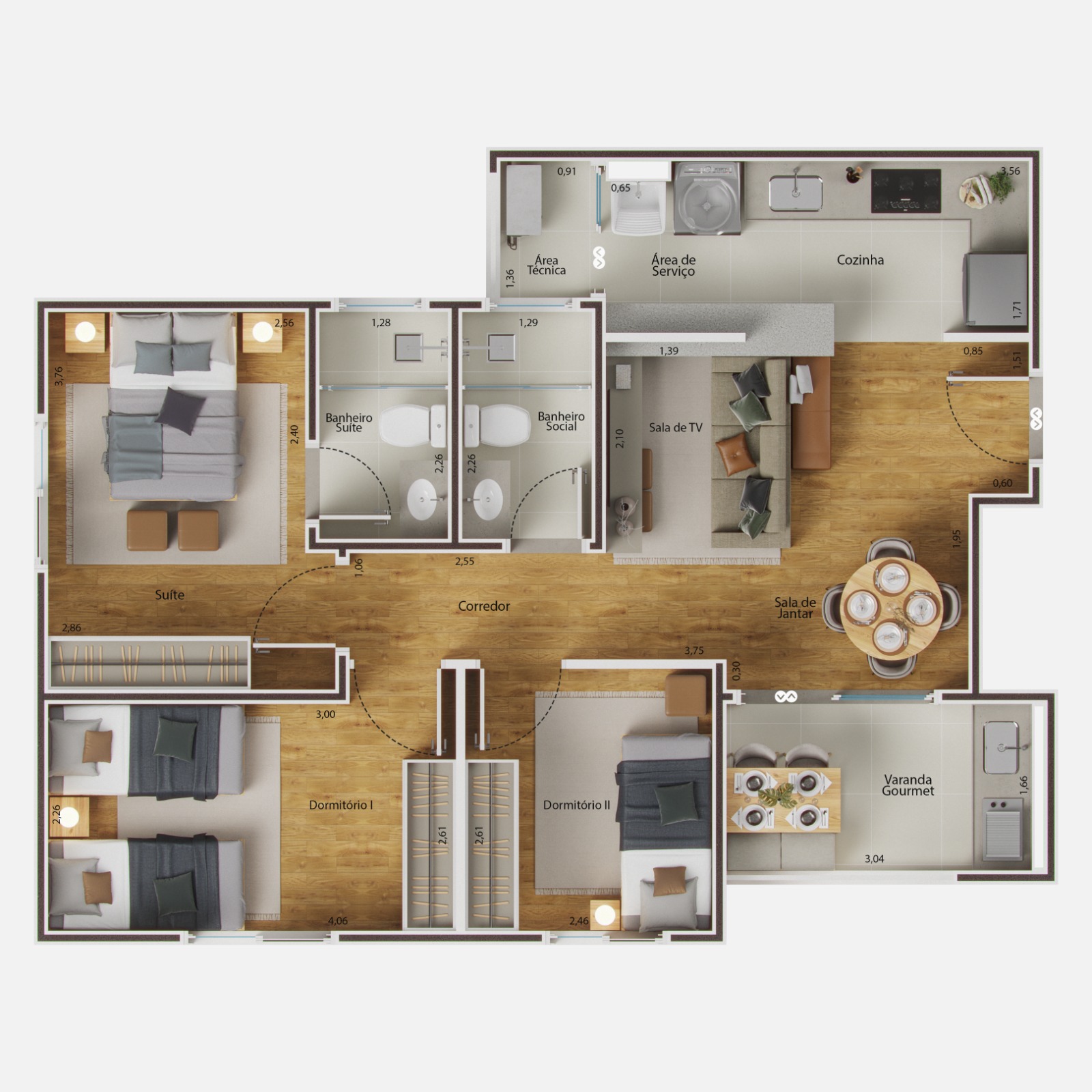 3 dormitórios sendo 01 suíte