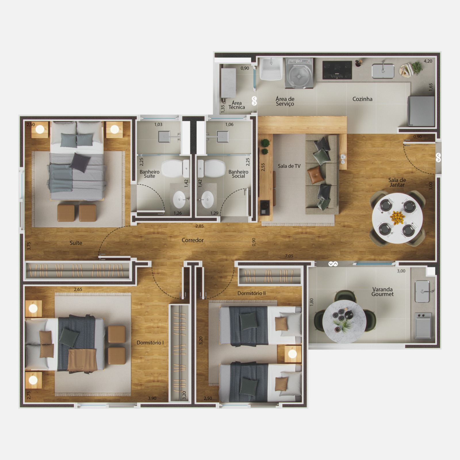 Apartamentos de 72 m² e 99,13 m²