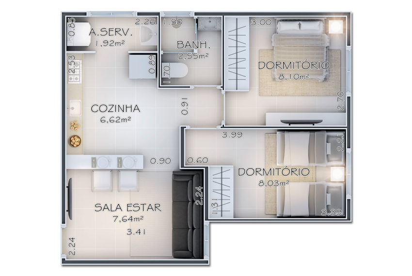 - Apartamentos com 41,45 m²